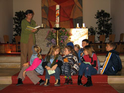 Bei den Viertklasslern etwa entspann sich eine recht lebhafte Diskussion über das Teilen und Anteilnehmen; dabei gelang es Kindern wie Betreuerinnen, die Brücke zu Spendenaktionen für Länder der Dritten Welt zu schlagen, wo es allenthalben an Trinkwasserbrunnen fehlt. So wurde das Anliegen des Liedes „Wenn jeder gibt, was er hat, dann werden alle satt“ für alle recht anschaulich. Es liegt an jedem einzelnen, ob alle genug bekommen. Diese Botschaft, die auch die