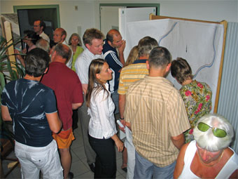 Eon-Wasserkraft fasst Zwei-Millionen-Euro-Projekt für 2007 ins Auge - Infoabend in Thansau Thansau (pil) – Der Hochwasserschutz beschäftigt die Thansauer nicht erst seit dem vergangenen Jahr. Regelmäßig werden bei langanhaltenden starken Regenfällen in Teilen des Ortes Keller überschwemmt; der unzureichende Abfluss der Rohrdorfer Ache sorgt zudem für überflutete Straßen. Nach jahrelanger Untätigkeit seitens der E.ON-Wasserkraft GmbH (EWK), für die sich Karl-Heinz Straßer als Abteilungsleiter Projektmanagement jetzt bei einem Informationsabend ausdrücklich entschuldigte, will das Unternehmen im kommenden Jahr den Bach umfassend ausbauen. Bei der gut zweistündigen Veranstaltung, zu der trotz hochsommerlicher Temperaturen etwa 110 Zuhörer ins Pfarrheim gekommen waren, stellte der Kraftwerksbetreiber gemeinsam mit den beteiligten Ingenieurbüros die Entwurfsplanungen für das Zwei-Millionen-Euro-Projekt vor.