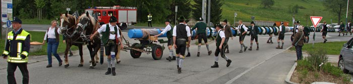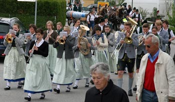 Das Schützenwesen, erinnerte Tischner als Schirmherr der Veranstaltung, sei bereits seit Jahrhunderten nicht nur in Bayern fest verankert; das Beschützen des Landes allerdings werde mittlerweile längst von anderen Einrichtungen und vor allem mit anderen Waffen bewerkstelligt. Um dem Schießsport – nach Ansicht Tischners „eine der schönsten Sportarten“ - aber auch weiterhin Vorschub zu leisten, spendierte er im Namen der Gemeinde zwei Gewehre, eines davon für die Jugend. Ein weiteres legte Braumeister Franz Amberger in Vertretung der Flötzinger Brauerei auf den Gabentisch. Ihre Verbundenheit zu den Thansauern demonstrierte an diesem Abend nicht zuletzt die Altschützengesellschaft Rohrdorf als Patenverein, bei dem jene bis 1956 angesiedelt waren: Vorstand Rupert Steiner überreichte eine Schützenscheibe mit den Kirchen beider Ortsteile als Motiv. Ein eindrucksvolles Anschauungsbeispiel für die „Bereicherung des kulturellen Lebens“, wie sie Wied tags zuvor in seinem Grußwort erwähnt hatte, bildete dann am Sonntag der Umzug vom Kapellenberg zum Festplatz, wo sich zur besonderen Freude der „Eichenlaub“-Schützen auch zahlreiche Thansauer Bürger zum gemeinsamen Mittagessen eingefunden hatten. 24. Juli 2006 Der "Pfarrerlehrbua" hat ausgelernt