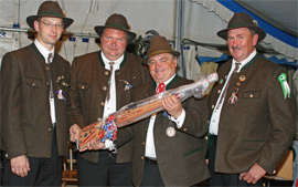Poschs besonderer Dank galt allen Vereinsmitgliedern, der Gemeinde Rohrdorf sowie den Achenmühler und Höhenmooser Geschäftsleuten, die mit ihren Spenden die Finanzierung der Standarte – „Stolz und künftiges Wahrzeichen“ der Achenmmühler Schützen - erst ermöglicht hatten. Einen passenderen Rahmen für die Weihe als das Jubiläum, dessen Auftakt das Preisplattln der Höhenmooser Trachtler gebildet hatte, gebe es ohnehin nicht, ergänzte Schirmherr Tischner. Die Funktion der Schützenvereine als Traditionsträger unterstrich auch der Rosenheimer Gauschützenmeister Albin Wied, der die Ehrenmedaillen des Deutschen und des Bayerischen Sportschützenbundes überbrachte und die Ehrung verdienter und langjähriger Mitglieder vornahm.
