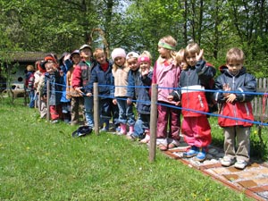 Mit die wichtigsten Impulse für die Entwicklung aber geben sich die Kinder gegenseitig. Die nicht Behinderten etwa lernen durch ihre gehandicapten Kameraden ganz selbstverständlich, Rücksicht zu nehmen. Fürsorge und Zusammenhalt haben eine ganz neue Bedeutung in der Zwergerlmühle bekommen. Und bereits jetzt sind für die Erzieherinnen die ersten Erfolge sichtbar: „Die Gruppe wächst gut zusammen.“ Dies wiederum bestärkt das Team in seinem Engagement; z.B. freuen sich alle neun Mitarbeiterinnen darauf, im Januar eine Fortbildung zu diesem Thema zu machen und opfern dafür gerne einen freien Tag. Freilich, erläutert Gertraud Kaiser, die die "Zwergerlmühle" seit fünf Jahren leitet, gab es anfangs Bedenken bei einigen Eltern, dass das Niveau in der Integrationsgruppe unter dem der Giraffen, Elefanten und Mäuse liege. Doch nicht selten seien die speziellen Förderangebote für die ganze Gruppe geeignet: So können jetzt alle Spatzen mit Silben-Sprech-Übungen ihre Mundmotorik trainieren – für die Gehandicapten ein ganz besonderes Erlebnis. Zudem würden viele Kleingruppen-Arbeiten angeboten. Die fachliche Betreuung der drei Integrationskinder, die so auch im Kindergarten mit den Nachbarskindern spielen können, liegt in den Händen einer Psychologin. Sie kommt regelmäßig nach Achenmühle und hält engen Kontakt zu Betreuerinnen und Eltern. Auf jeden Fall, ist Kaiser überzeugt, bedeutet die Entscheidung für eine Integrationsgruppe eine „enorme Bereicherung“, und zwar für Kinder, Team und die gesamte Gemeinde. 14. November 2003 "Moralische Verpflichtung"