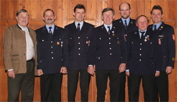 Nicht nur Moser bedauerte, dass keiner der drei Bürgermeister zur Jahreshauptversammlung ins Gasthaus Kreidl gekommen war; gerne hätte er Fritz Tischner persönlich seinen Dank für dessen Engagement im Bezirksfeuerwehrverband ausgesprochen. Einen kurzen Rückblick aufs vergangene Vereinsjahr mit der Teilnahme am Schützenfest in Achenmühle und dem Unterhaltungsabend beim Gaufest in Höhenmoos gab Vorstand Josef Stuffer. Er dankte der aktiven Mannschaft und allen Förderern der Feuerwehr und stellte fürs kommende Jahr unter anderem einen Skiausflug sowie einen Vereinsausflug in Aussicht. Ebenso erinnerte er an das Rauchverbot in öffentlichen Räumen, das ab 1. Januar auch fürs Feuerwehrhaus gelte. Für 40 beziehungsweise 25 Jahre aktiven Dienst wurden Georg Unterseher, Josef Baumgartner und Peter Böck geehrt. Altbürgermeister Paul Unterseher senior musste sich dabei allerdings aufs Anstecken der Ehrenzeichen beschränken; die Urkunden mit der Unterschrift des neuen bayerischen Innenministers werden nachgereicht. 13. Dezember 2007 Eine bunt gemischte Riege für die Kommunalwahl