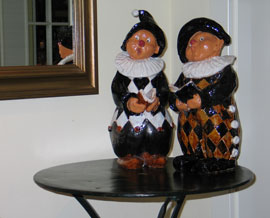 „Das ist der Vorteil, wenn man's schon so lange macht. Dann muss man nicht soviel fragen.“, meint eine Dunkelhaarige, die seit beinahe 15 Jahren in Ton schwelgt und schon so einiges für Haus und Garten getöpfert hat. Dabei haben auch blutige Anfänger schon nach wenigen Stunden ein Erfolgserlebnis, wenn der erste eigenhändig geformte Blumentopf für den Schrühbrand 16 Stunden lang in den Brennofen wandert. „Man muss sich nur trauen, den Ton richtig anzufassen“, macht Burkamp den Unerfahrenen Mut zum Modellieren und zum Ausprobieren. Selbst wenn das feuchte Gebilde, das vielleicht einmal ein Frosch oder eine Henne werden sollte, zu einem Häuflein Elend zusammensackt, ist das kein Beinbruch – passiert ist das jedem schon; und nicht selten entstehen aus diesen Missgeschicken die schönsten weil kuriosesten Exemplare. Die Kursleiterin selbst hatte vor 30 Jahren in der Volkshochschule zum erstenmal einen Klumpen Ton in den Händen und spürte gleich: „Das ist mein Element.“ Die Leidenschaft fürs Gestalten und Modellieren hat die Mutter dreier Töchter seither nicht mehr losgelassen. Auch mit reduzierten Formen experimentiert sie, doch welchen Stil Ute Burkamp bevorzugt, verrät ein Blick in ihre private Werkstatt. Dort lachen dem Betrachter liebevoll gestaltete und ebenso drollige wie farbenfrohe Frösche, Schafe, Maulwürfe, Hühner und Zwerge entgegen. Manche der zwölf Kursteilnehmerinnen haben ihre Modelle im Kopf dabei, wenn sie zu Abdrehschlinge, Modellierhölzern und -schlingen greifen; andere wieder bringen Vorlagen mit: einen kleinen braunen Filzhasen etwa, oder einen weiß-orange gestreiften Clownfisch in Plüsch. Und auf Motivsuche sind sowieso alle immer und überall.