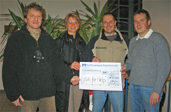 Thansau (pil) – Über 375 Euro – den Erlös aus dem jüngsten Kleidermarkt in Thansau – konnte sich Katharina Oberländer vom Rosenheimer Frauenhaus freuen. Angela Poller, Mitorganisatorin des Bazars, überreichte den Scheck vor kurzem bei einem Frühstück, mit sie zugleich den vielen Markt-Helferinnen für ihre Mitarbeit dankte. Was mit dem Geld passiert, steht bereits fest. Das Frauenhaus will sich ein neues Fahrrad samt Anhänger anschaffen. 26. November 2003 "Solibeitrag": Weiter Essen auf dem Tisch